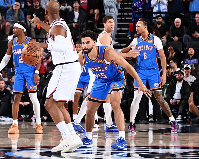 本場比賽中,雷霆的替補后場新星阿杰-米切爾(Ajay Mitchell)的表現(xiàn)又一次令人眼前一亮。米切爾全場出場19分38秒,投籃10中4,三分線外1中0,得到了8分4籃板3助攻4搶斷的數(shù)據(jù),還有2次失誤和2次犯規(guī),正負值更是達到了全場最高的+31。米切爾在進攻端的手感還是比較一般的,他并沒有得到太多的分數(shù),他的進攻效率也不是特別理想。不過米切爾也是展現(xiàn)出了一定的傳球能力和組織能力,他在支配球和傳導球方面還是做得相當不錯的。最關鍵的是,米切爾在防守端的表現(xiàn)令人刮目相看,他直接變身防守大閘并且在防守端起到了決定性的作用。米切爾幫助雷霆第二陣容建立起了巨大的領先優(yōu)勢,這也是雷霆最終能夠比較順利地拿下本場比賽勝利的重要因素。
